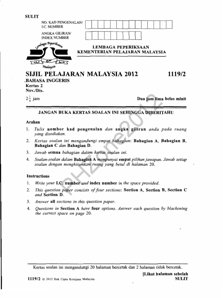 Kertas Sebenar Spm 2012 Bahasa Inggeris 1119 2 Pdf Business